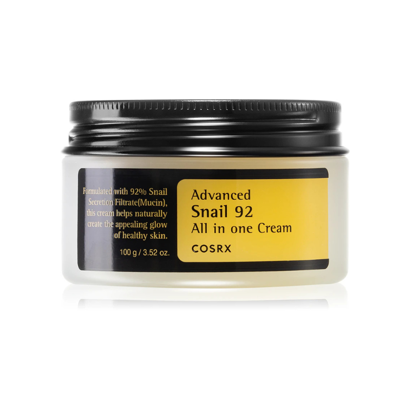 O creme intensivo regenerador com extrato de baba de caracol Cosrx Advanced Snail 92 All In One Cream contém 92 % de filtrado de baba de caracol, por isso desliza lindamente na pele, nutre-a de maneira intensa, preenche-a e deixa-a radiante.