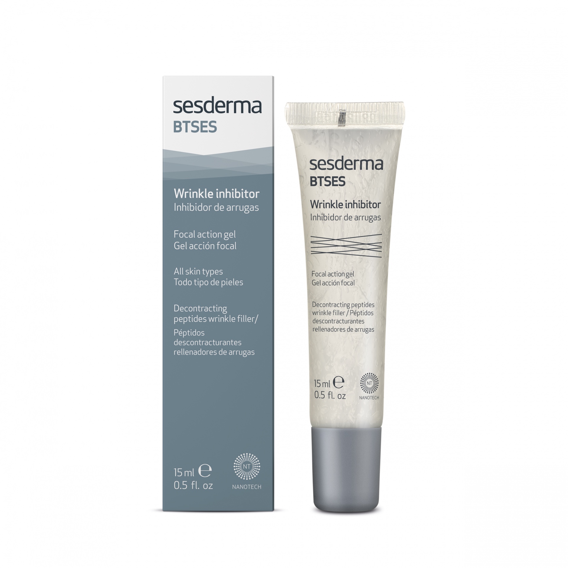 Gel ativador focal anti-rugas Sesderma BTSES com embalagem e tubo prateado