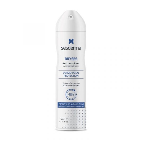 Com sais de alumínio, Sesderma Dryses Dermo Total Protection é um spray antitranspirante para 48h de proteção. Uma fórmula de elevada eficácia e longa duração, que mantém a pele perfeitamente protegida contra o suor e maus odores. Ideal para todo o tipo de pele