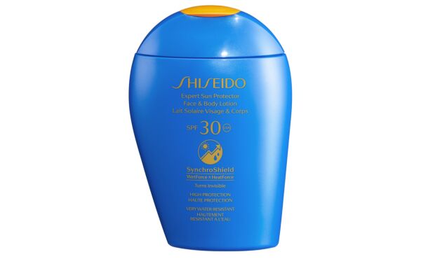 Precisa de proteção segura contra os efeitos nocivos dos raios solares na pele do rosto e corpo. O leite solar para o rosto e corpo SPF 30 Shiseido Sun Care Expert Sun Protector Face Body Lotion confere à pele a proteção que, graças ao complexo SynchroShield™, não diminui com a transpiração ou calor. Pelo contrário, os efeitos do creme aumentam quando a pele entra em contacto com água ou faz muito calor.